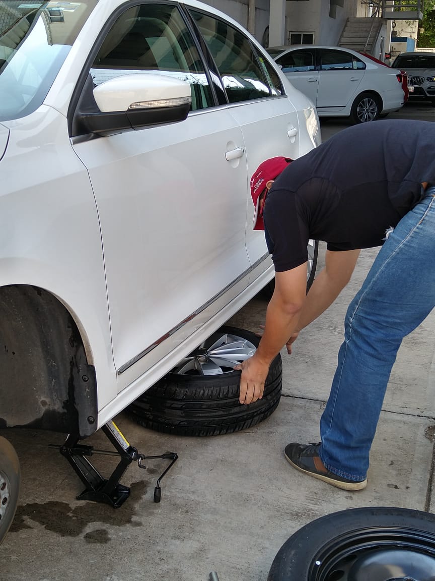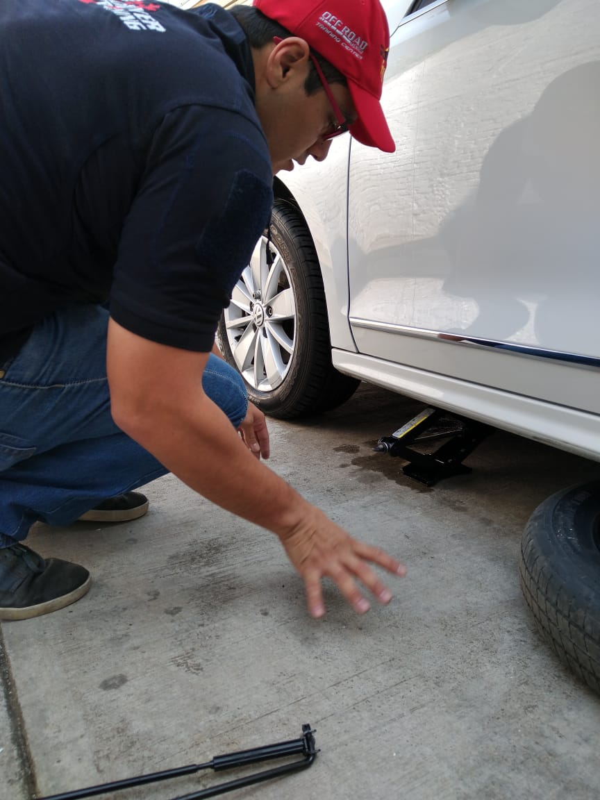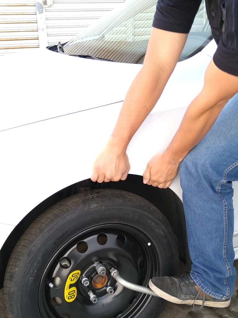 IMPORTANTE: tienes que verificar que la llanta de refacción tiene la presión correcta porque suele pasar que como la llanta pasa meses en la cajuela, no tiene la presión correcta.