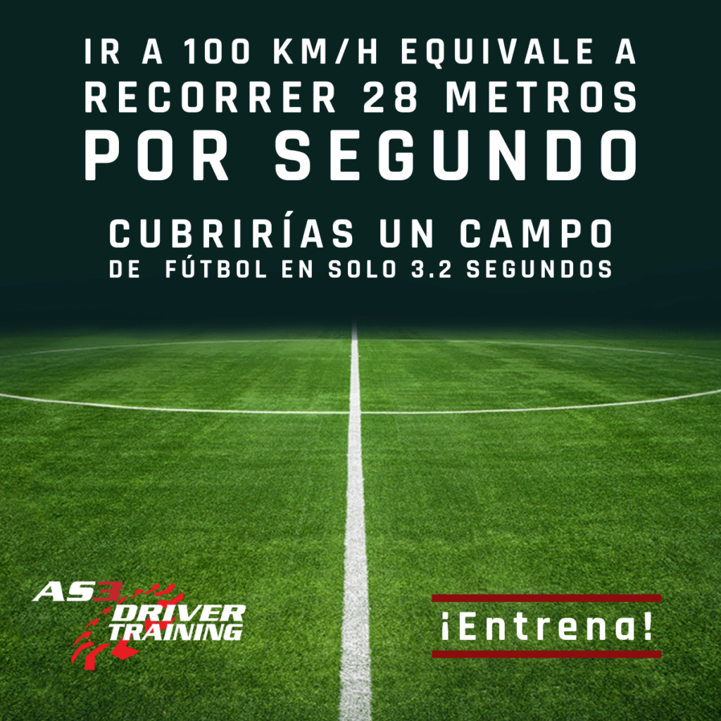 Recuerda que en una situación de emergencia no tenemos horas o minutos, sino segundos. Por ejemplo: ir a 100 km/h implica que recorremos 28 metros por segundo.