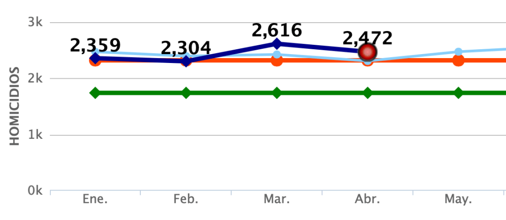 El repunte de la violencia homicida inició desde principios de 2020, pero en enero, el promedio diario de asesinatos fue de 93.3 víctimas; en febrero ascendió a 98.5; en marzo llegó a 99.3 víctimas cada 24 horas; y en abril se sobrepasó la barrea de los cinco casos diarios para ubicarse en 100.6 asesinatos.