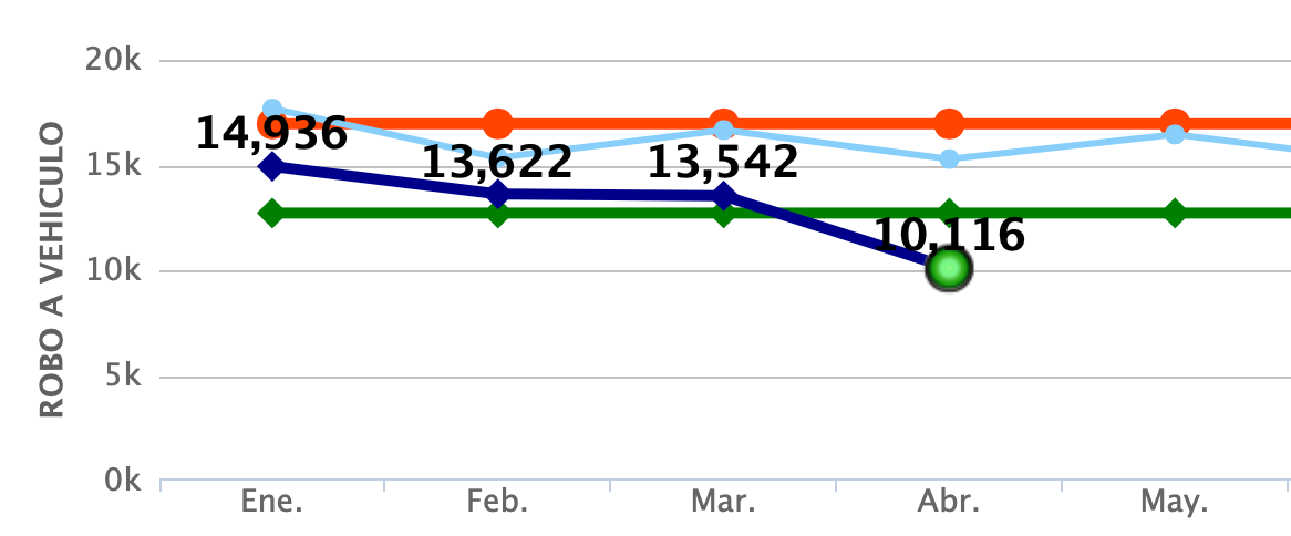 De acuerdo con cifras de la organización Semáforo Delictivo, el robo de auto disminuyó 15%, el de negocio, 16% y el de casa habitación, 8%, mismos que ya mostraban cifras favorables a principio de año.